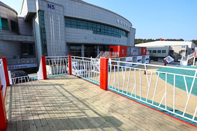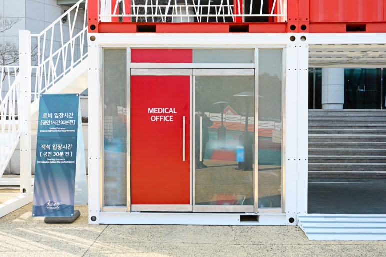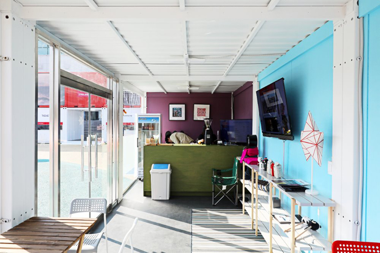江陵原州大學(xué)是韓國(guó)的國(guó)立綜合大學(xué),坐落于東海岸的有力地勢(shì),對(duì)觀(guān)光,環(huán)境,海洋等領(lǐng)域進(jìn)行大力投資。得益于優(yōu)美的環(huán)境,一些展覽和演出會(huì)選址在大學(xué)里進(jìn)行。為了方便臨時(shí)售票和進(jìn)出場(chǎng),一些集裝箱建筑被佇立在了這里。
